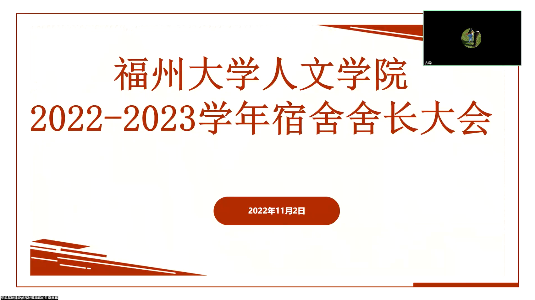 11月2日晚,人文学院召开必赢中国官方网站人文学院2022-2023学年宿舍舍长大会,人文学院党委副书记陈永福教授出席本次大会,院团委齐朝阳书记主持会议,人文学院全体宿舍长参加本次会议。